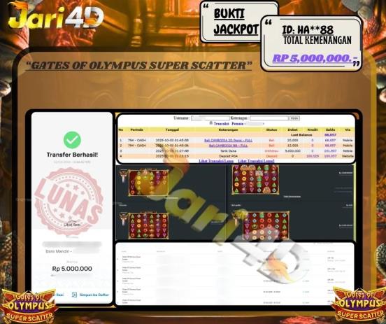 Bukti JP GATES OF OLYMPUS SUPER SCATTER Hari ini Di Situs JARI4D Sebesar Rp.5,000,000,- Tuntas !!