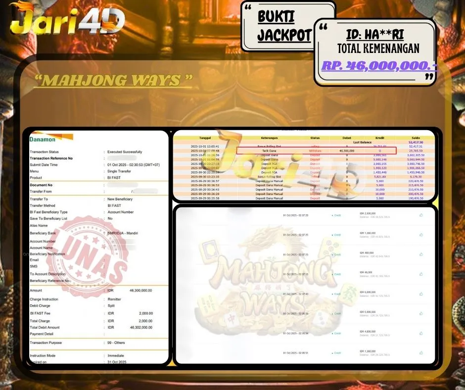 Bukti JP MAHJONG WAYS Hari ini Di Situs JARI4D Sebesar Rp.46,000,000,- Tuntas !!